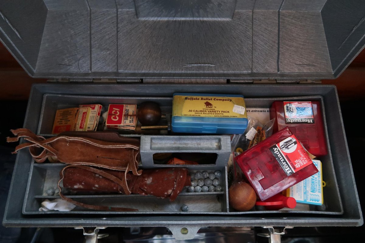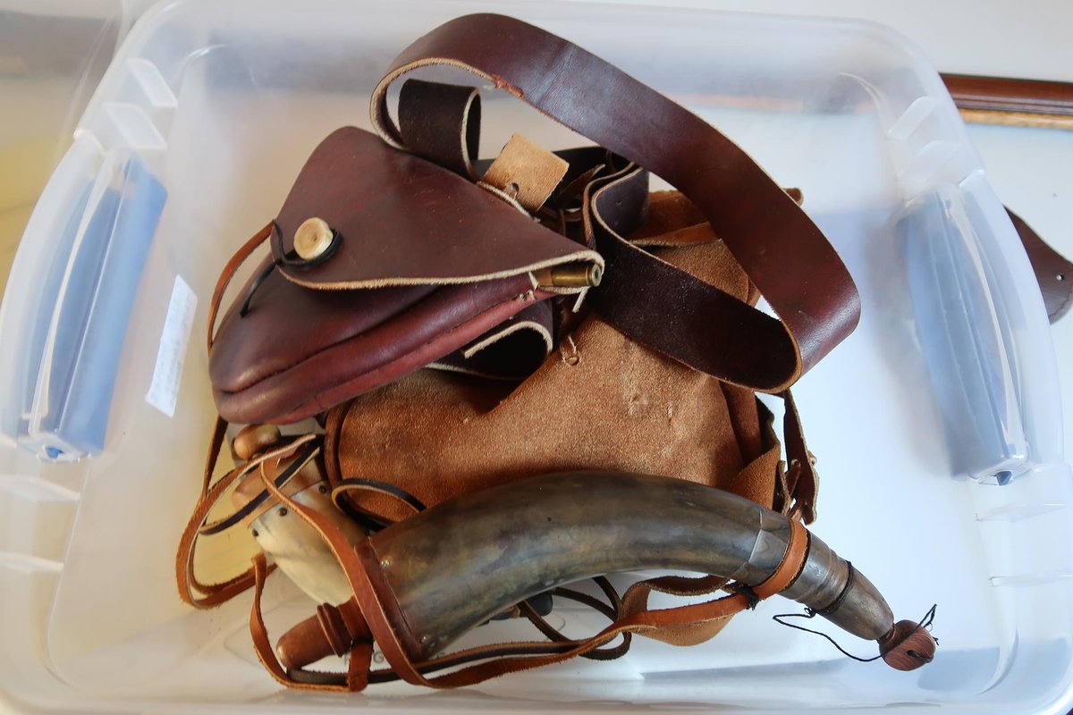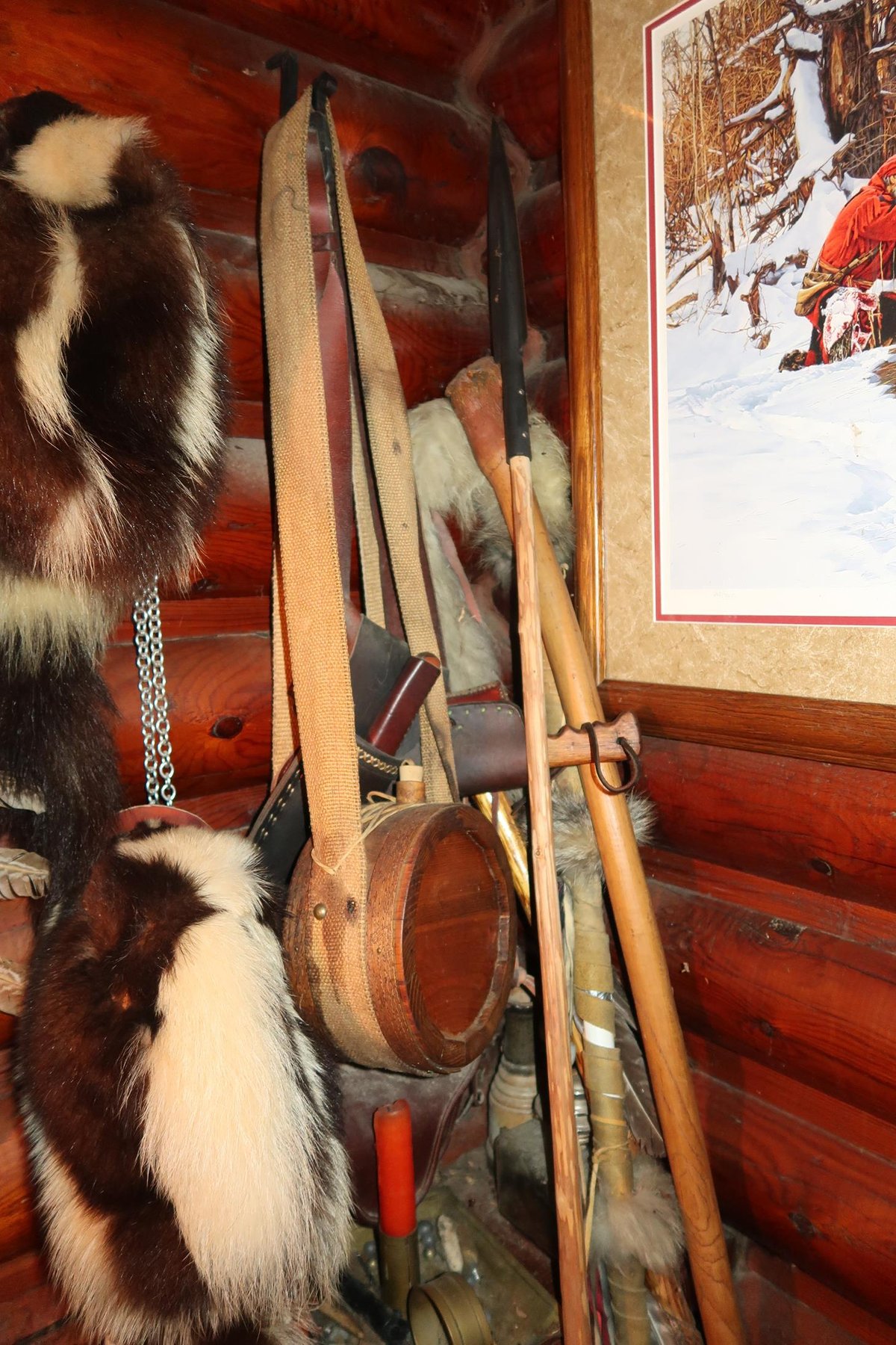 HUNTING/FISHING: Powder horns/flasks, camping gear, recurve bows and crossbows including Bear-Barnett-AMF-Shakespeare, arrows, quivers, percussion caps, muzzleloading supplies, archery supplies, sabots, round balls, canoes, kayaks, firearm/archery books, vintage/antique snowshoes, tomahawks, hatchets-INC. NORLUND, spears, tree stands, powder tins, vintage ammo boxes, fur hats, Johnny Stewart Animal Caller, ammo including .22, .44 and .357, bullet molds, LOADS of knives including Schrade-Case-Maxam-Kabar-Ontario-Old Hickory-Western-Okapi-Green River-Winchester-Roosevelt Rough Rider-HANDMADE-much more to be found!