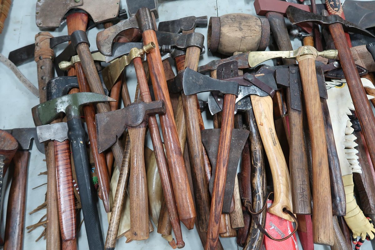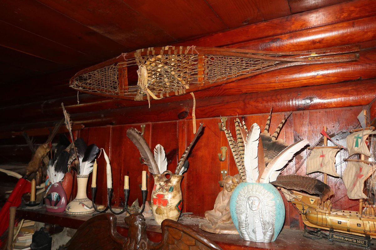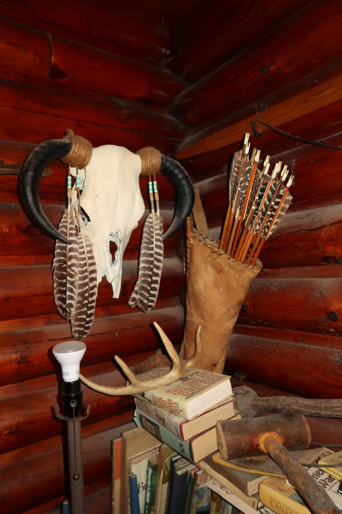 HOUSEHOLD/COLLECTIBLES/TOOLS: Gun cabinets, Aqua Guide 705 radio, Native American prints/carvings/décor, decorated skulls, figurines, American West caps, vintage sled, Santa Maria 1492 model, vintage trunk, lamps, antique toy muzzleloader, Buffalo nickels, bucksaw, two man saw, hay knife, chopping tools, garden tools, chainsaws, Delta grinding wheel w/stand, Delta belt sander, rotary tool, D-vise, drill press, hand tools, vise, tool boxes, miter saw, hardware organizers, car ramps, firearms/bow tools, more to be found in buildings!